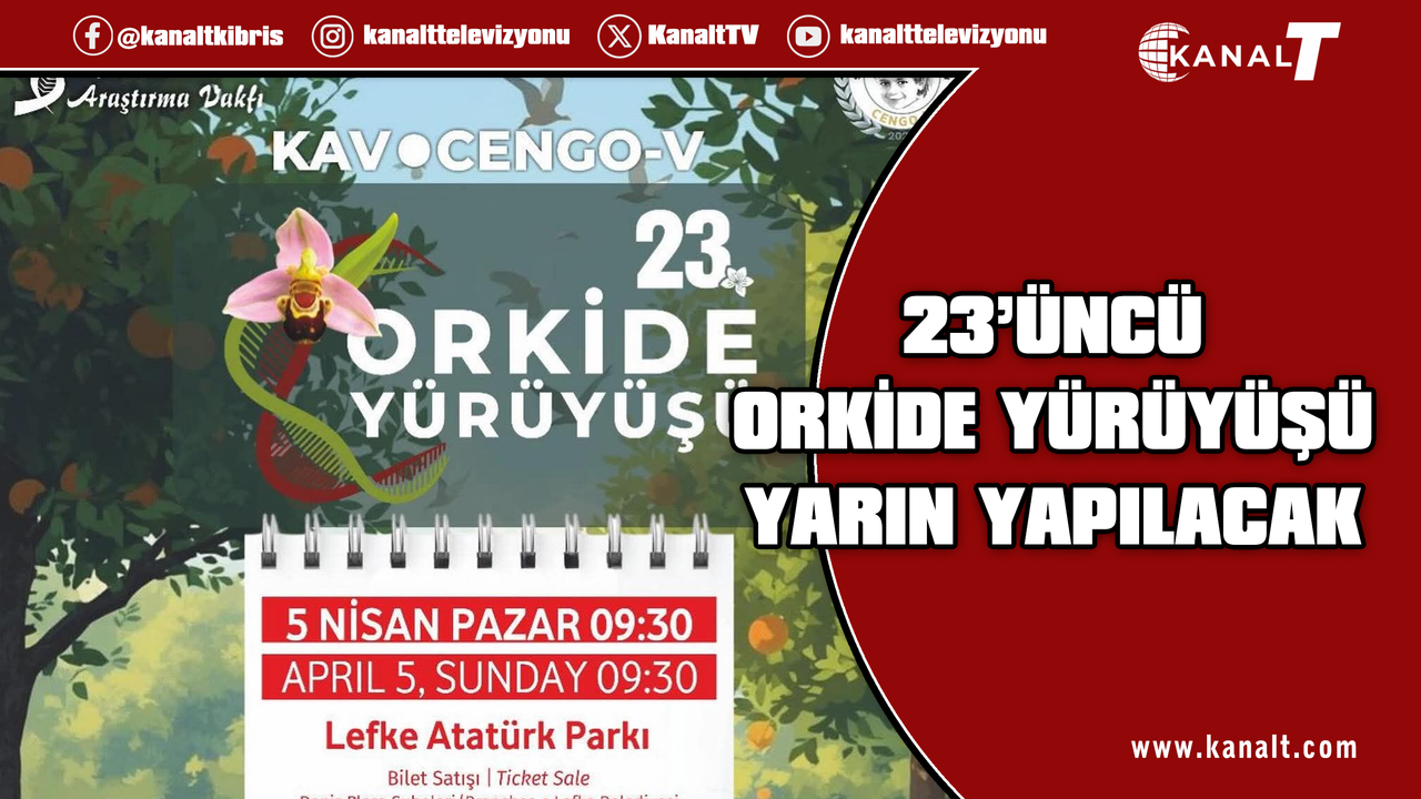 Kanser Araştırma Vakfı (KAV) ve CENGO-V Vakfı iş birliğiyle bu yıl 23’üncüsü düzenlenen Orkide Yürüyüşü yarın Lefke’de yapılacak.