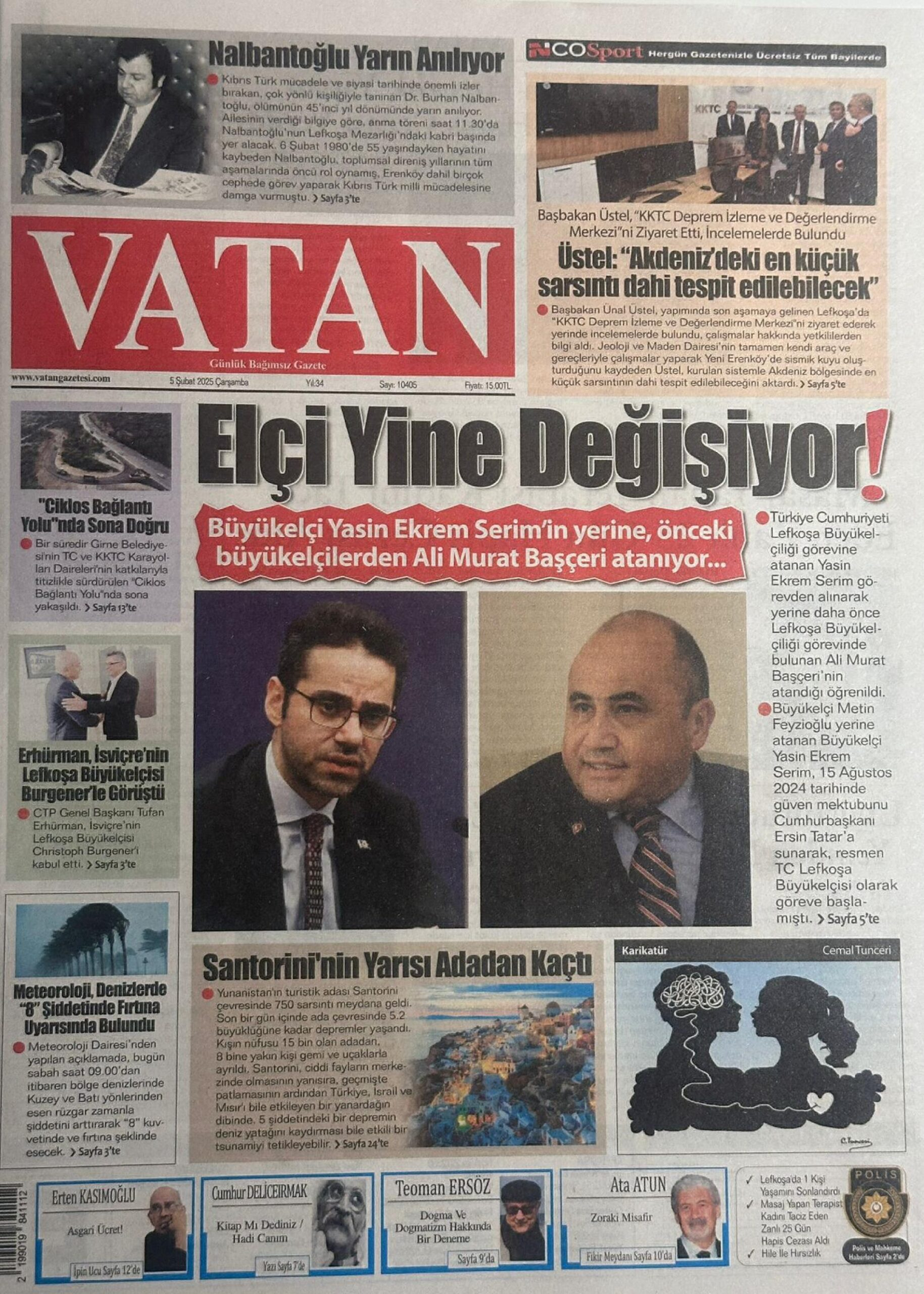 5 Şubat 2025 Çarşamba KKTC Gazete Manşetleri