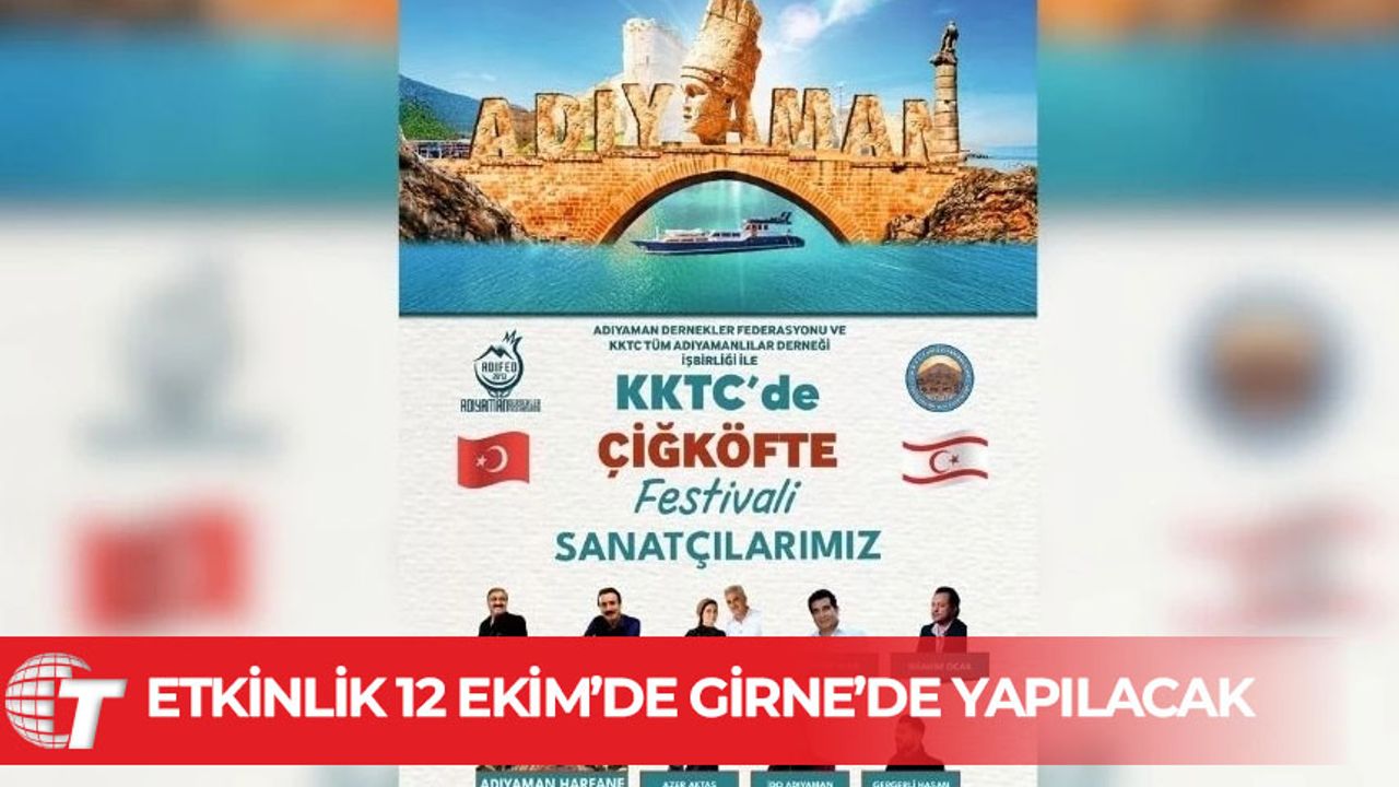 Adıyaman Dernekler Federasyonu ile KKTC Tüm Adıyamanlılar Derneği iş birliğinde düzenlenen “Çiğköfte Festivali’nde Kardeşlik Sofrasında Buluşuyoruz” etkinliği, bu yıl da büyük bir coşkuyla gerçekleştirilecek.