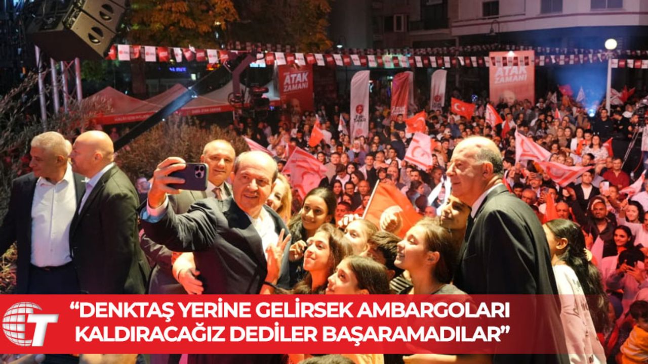 “CTP’nin adayı daha iki hafta öncesine kadar ne diyordu? Kıbrıs meselesini ben çözerim diyordu. Biz de diyorduk ki herhalde elinde bir sihirli değnek var. Şöyle bir savurdu mu hop bütün sorunlar çözülecek. Yahu çözse yanında çalıştığın, seninle aynı çizgideki Talat çözerdi, Akıncı çözerdi. Çözebildiler mi? Hayır çözemediler. Bunlar neyi yaptı bugüne kadar, hangi eseri, hizmeti ortaya koydular da çözebilecekler? Hayır çözemezler.