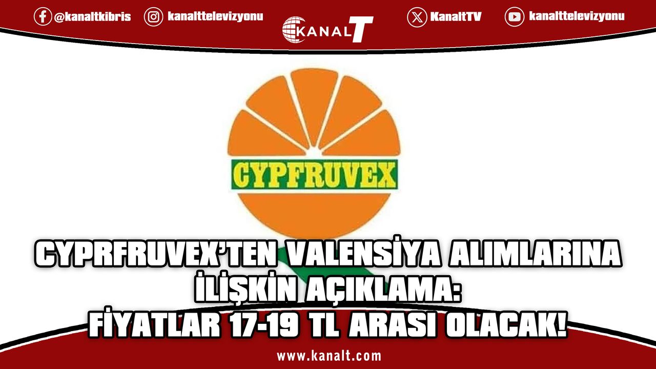 Kıbrıs Meyve Sebze Cypfruvex İşletmecilik Ltd., Başbakan Ünal Üstel tarafından açıklanan Valensiya portakal fiyatlarına ilişkin yazılı bir duyuru yayımladı.