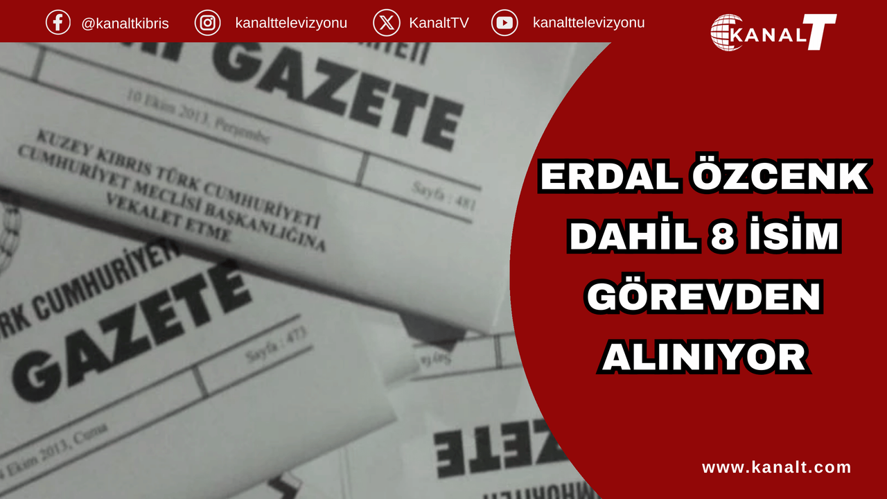 Resmi Gazete’de yayımlanan karara göre, Erdal Özcenk, Halil Orun, Mustafa Safran, Mustafa Kurt, Beyhan Gürgöze, İsmail Güneş Güneşoğlu, Özgür Yuca ve Servet Karabacak’ın Doğu Akdeniz Üniversitesi Vakıf Yöneticiler Kurulu Üyeliği görevinden alınmalarının Cumhurbaşkanı’na önerilmesine karar verildi.