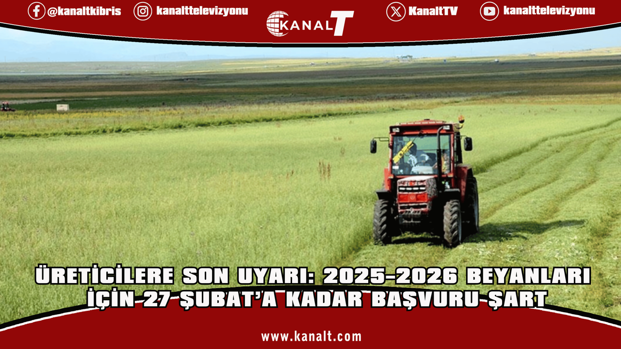 Üreticilerin 2025-2026 üretim yılı tazminat ödemelerinden ve Tarım ve Doğal Kaynaklar Bakanlığı’nın sağladığı Doğrudan Gelir Desteği’nden yararlanabilmek için beyan bildirimlerini 27 Şubat Cuma gününe kadar yapması gerekiyor.