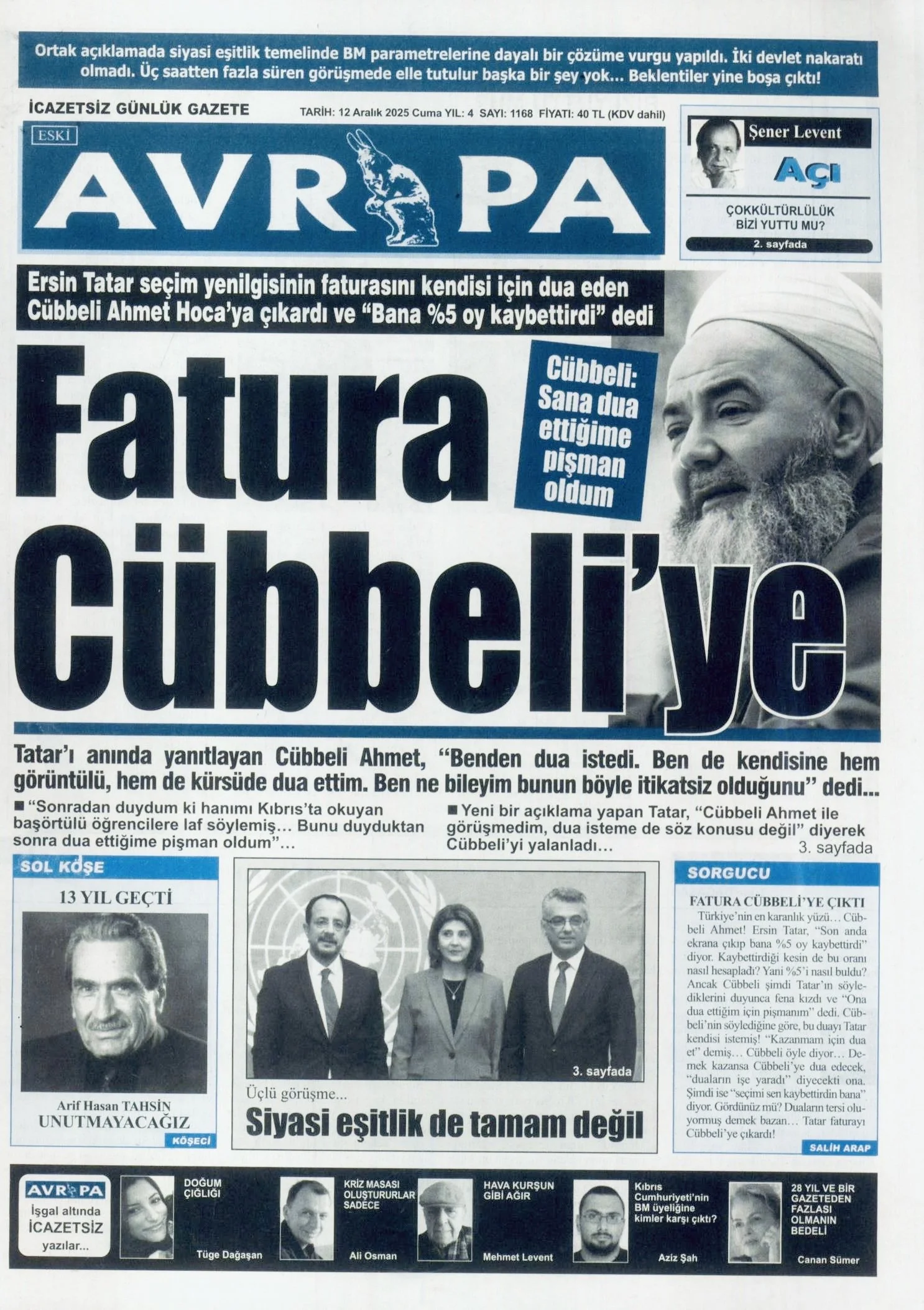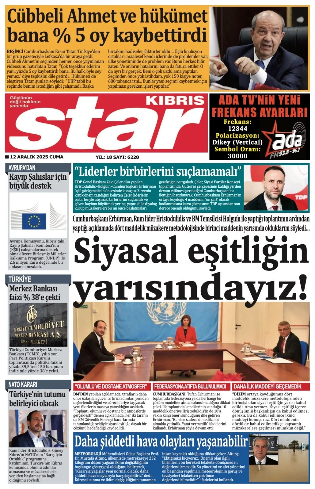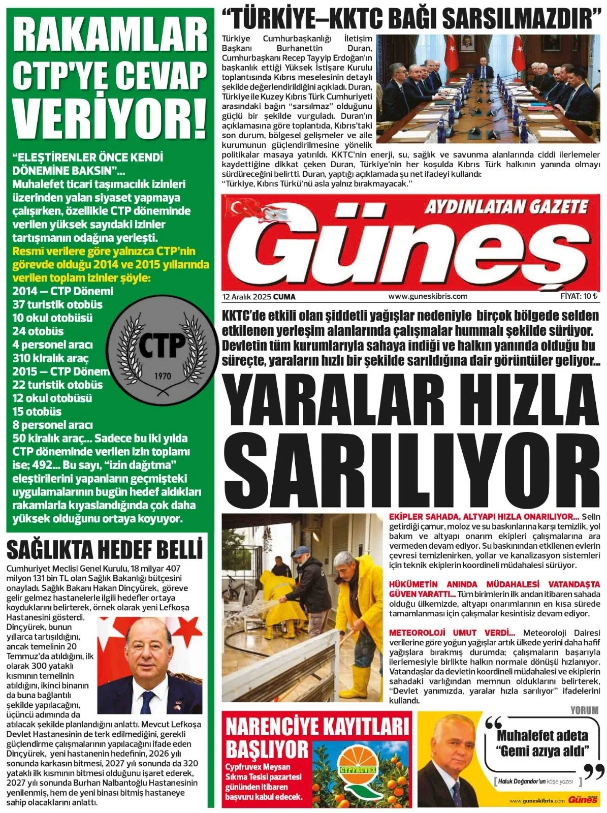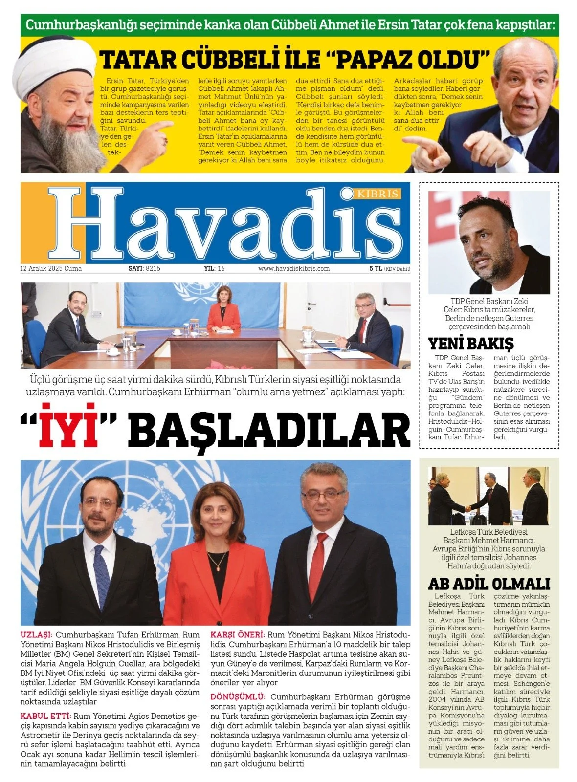 Gazete Manşetleri - 12 Aralık 2025