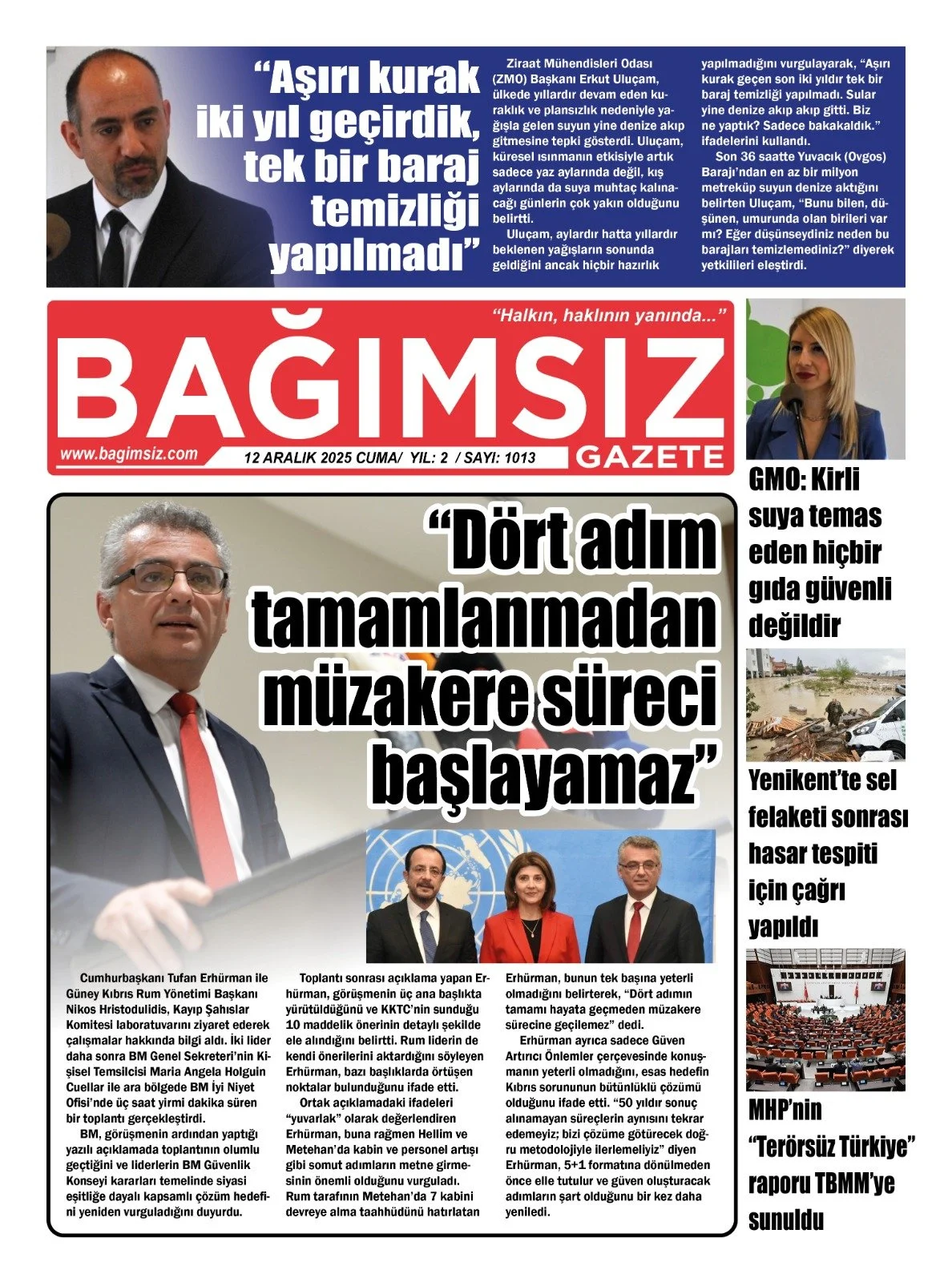 Erhürman: Güney Kıbrıs’taki barajların kapakların açılma riski yok
