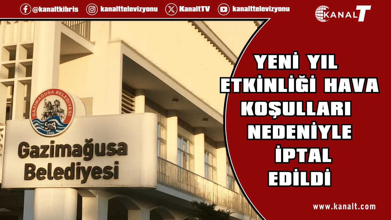 Gazimağusa Belediyesi tarafından 31 Aralık akşamı Namık Kemal Meydanı’nda düzenlenmesi planlanan yeni yıl etkinliği, beklenen olumsuz hava koşulları nedeniyle iptal edildi.