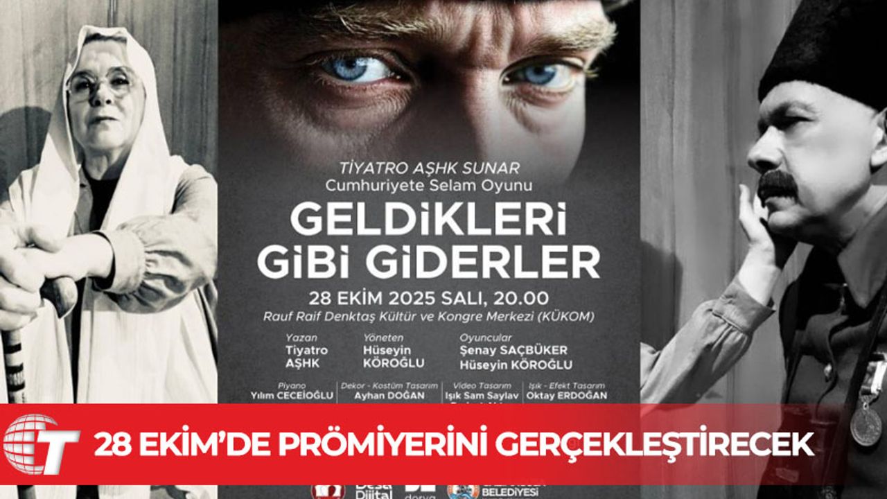 Tiyatro AŞHK Sanat Yönetmeni Hüseyin Köroğlu “Geldikleri gibi giderler” adlı oyunun 28 Ekim 2025 Salı akşamı Rauf Raif Denktaş Kongre ve Sergi Sarayı’nda Saat:20.00’de dünya prömiyerini gerçekleştireceğini açıkladı.
