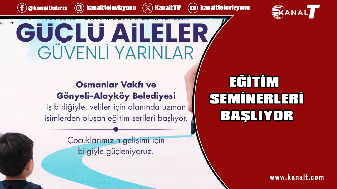 Osmanlar Vakfı ile Gönyeli–Alayköy Belediyesi iş birliğinde, bölge okullarının katkılarıyla velilere yönelik “Güçlü Aileler, Güvenli Yarınlar” başlıklı eğitim seminerleri başlıyor.