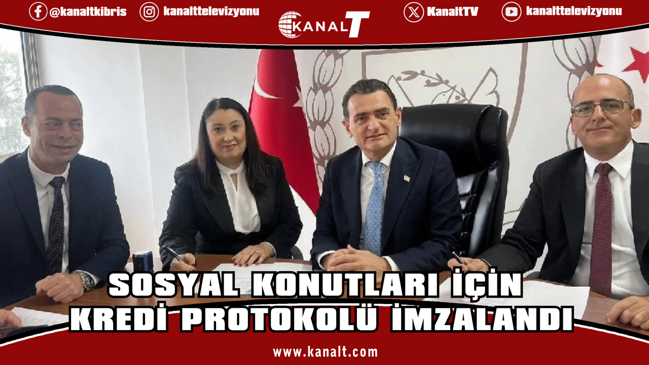 Kuzey Kıbrıs Türk Cumhuriyeti İçişleri Bakanlığı Konut Edindirme Birimi ile Creditwest Bank, K.T. Koop Merkez Bankası ve Kıbrıs Vakıflar Bankası arasında, 1. Etap Güzelyurt Sosyal Konutları hak sahiplerine konut kredisi sağlanmasına ilişkin protokol bugün İçişleri Bakanlığı’nda imzalandı.