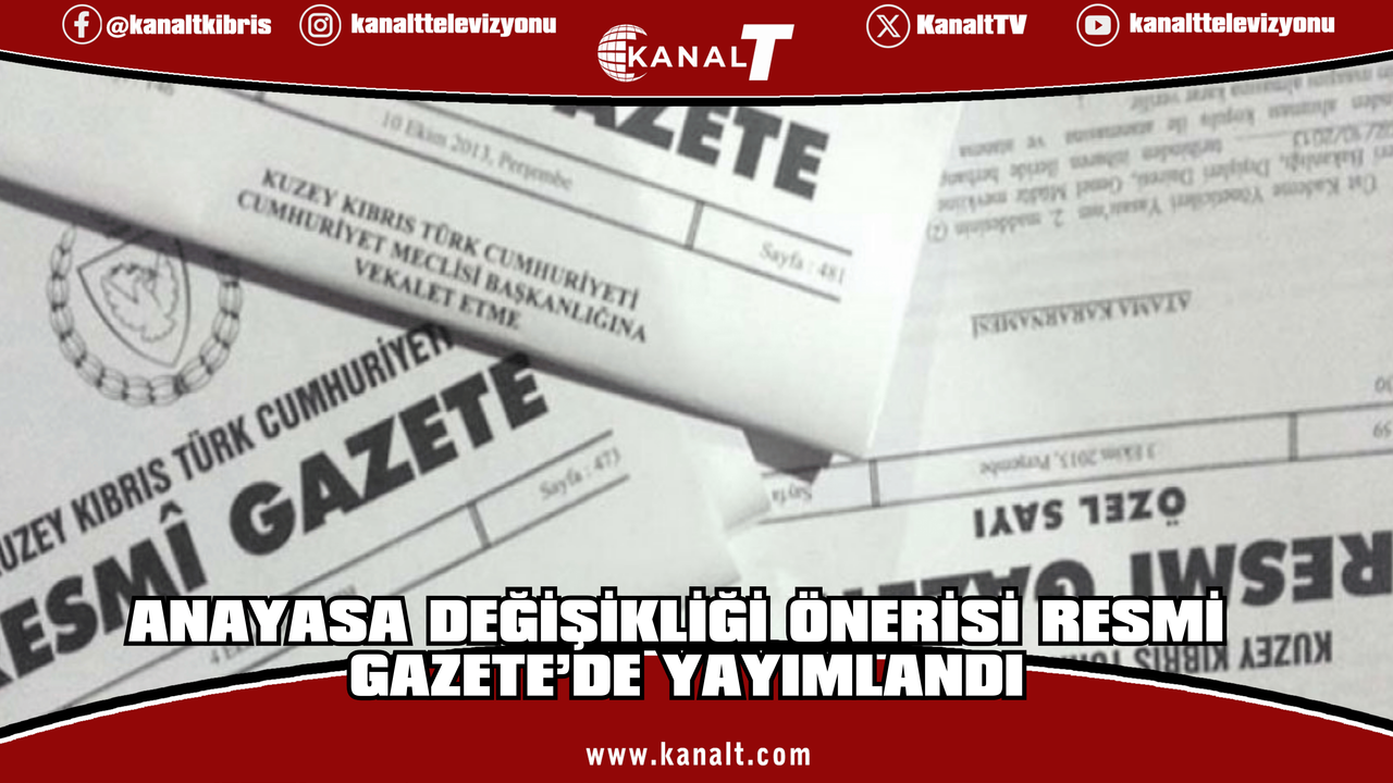 Cumhuriyet Meclisi’ne Ulusal Birlik Partisi (UBP), Demokrat Parti (DP) ve Yeniden Doğuş Partisi (YDP) milletvekillerinin imzasıyla sunulan “Anayasa Değişikliğine İlişkin Yasa Önerisi” salı günkü Resmi Gazete’de yayımlandı.