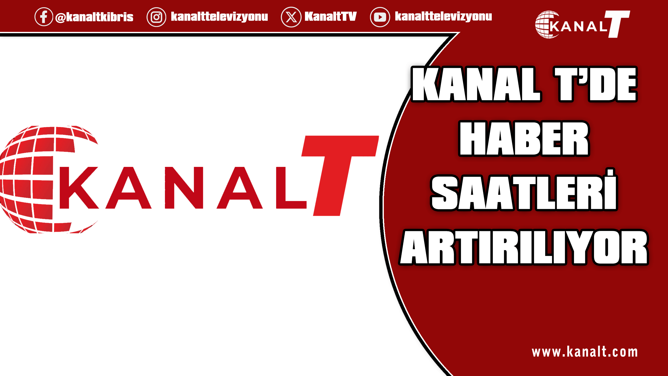 Böylece sizin diliniz ve sizin sesiniz olan Kanal T, hafta için kısa haberler ile birlikte gün sonuna kadar 7 bülten ile yurttan ve dünyadan tüm gelişmeleri size aktaracak. Cumartesi ve Pazar günleri ise haberler her zamanki gibi saat 13.00 ve 18.30’da sizlerle buluşmayı sürdürecek. Kanal T, Kıbrıs Türkü’nün onurlu sesi…