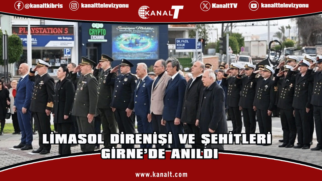Kıbrıslı Türklerin, 62 yıl önce Rum-Yunan saldırıları karşısında Limasol’da gösterdiği direniş ve direniş sırasında şehit düşenler, bugün Girne’de, Limasol-Girne Şehitleri ve Özgürlük Anıtı önünde yer alan bir törenle anıldı.