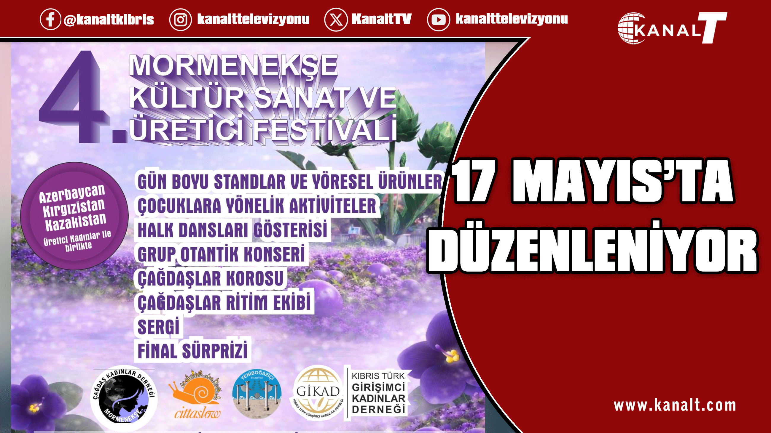 Mormenekşe’de bu yıl dördüncüsü düzenlenecek olan “Mormenekşe 4. Kültür, Sanat ve Üretici Festivali” için geri sayım başladı. Mormenekşe Çağdaş Kadınlar Derneği ile Kıbrıs Türk Girişimci Kadınlar Derneği’nin dayanışmasıyla hayata geçirilen festival, 17 Mayıs Pazar günü Mormenekşe Enginar Çemberi Köy Meydanı’nda gerçekleştirilecek.
