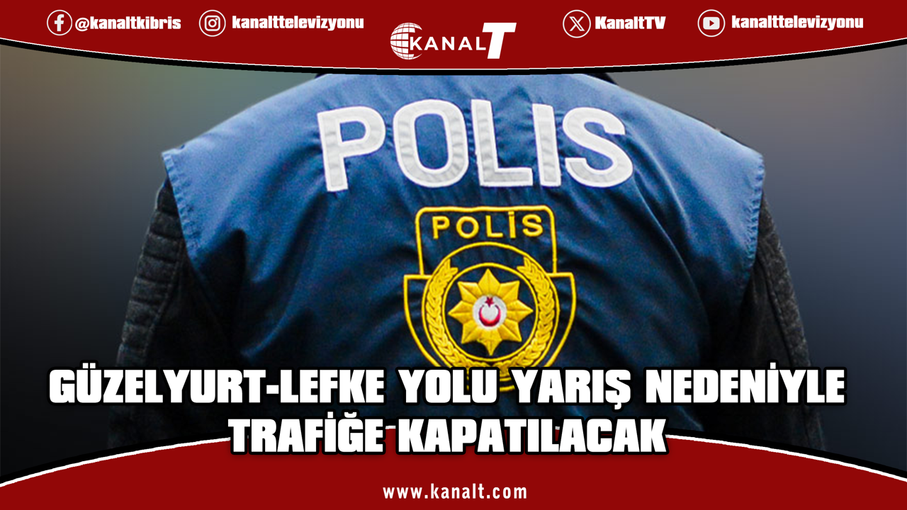 Polis, belirtilen tarih ve saatler arasında, Güzelyurt-Lefke Çevre Yolu’nun Doğancı çemberi ile Cengizköy çemberi arasında kalan yol güzergâhın (4,5 kilometre), çift yönlü trafik akışına kapatılacağını açıkladı.