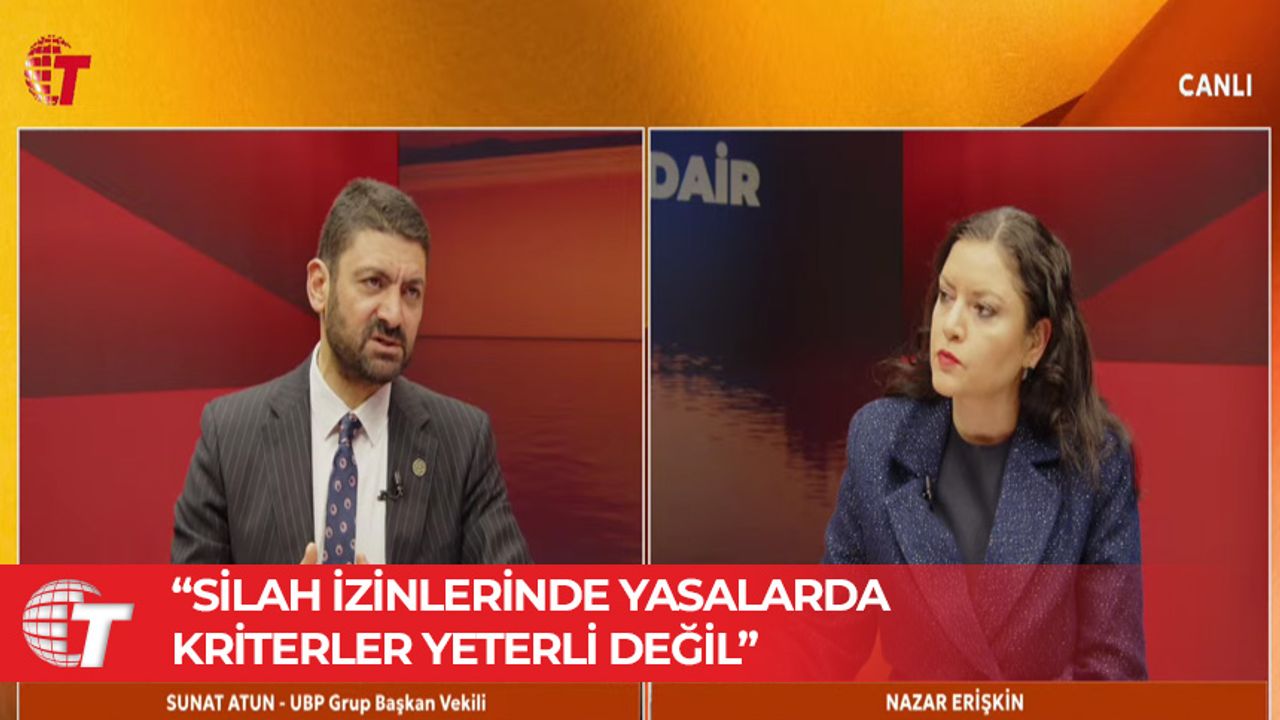Ulusal Birlik Partisi (UBP) Milletvekili ve Grup Başkanvekili Sunat Atun, Kanal T’de yayınlanan, Nazar Erişkin’in sunduğu Güne Dair programına konuk olarak silah izinleri ile ilgili önemli değerlendirmelerde bulundu.