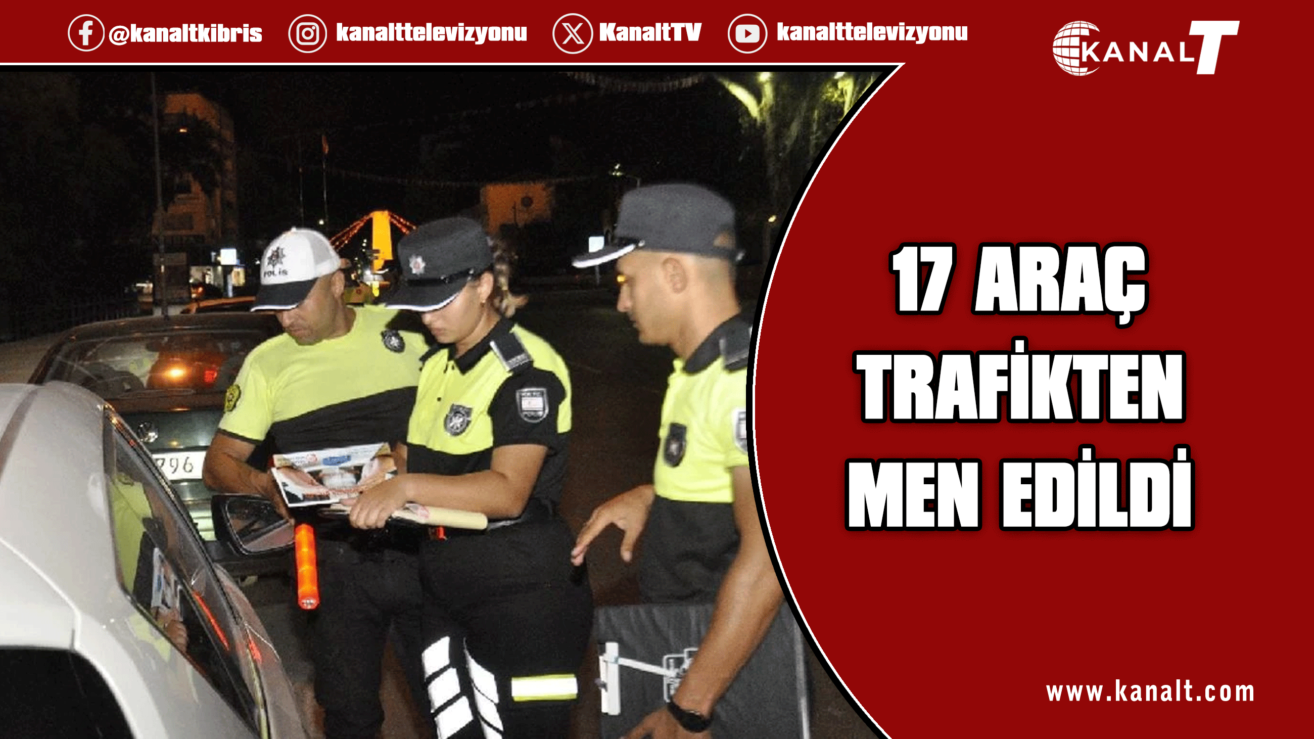 Polis Genel Müdürlüğüne bağlı trafik ekipleri tarafından dün ülke genelinde yapılan denetimlerde toplam 2 bin 56 araç sürücüsü kontrol edildi. Denetimler sonucunda çeşitli trafik suçlarından 310 sürücü rapor edilerek aleyhlerinde yasal işlem başlatılırken, 17 araç trafikten men edildi.