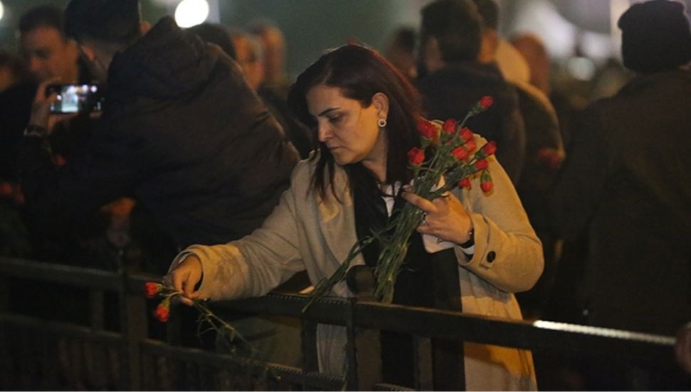 Kalabalık, daha sonra ilk depremin meydana geldiği saat olan 04.17'de ellerindeki karanfilleri Saat Kulesi'ne bıraktı.